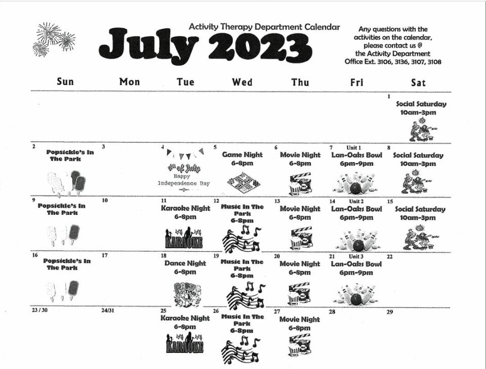 ELDC Activity Dept. Calendar July, 2023