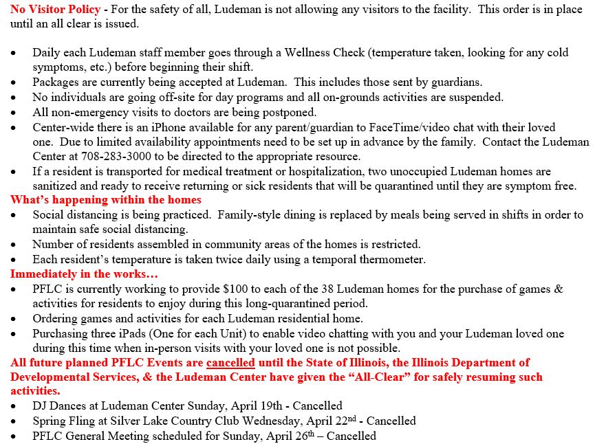 PFLC and Ludeman Center Information – COVID-19