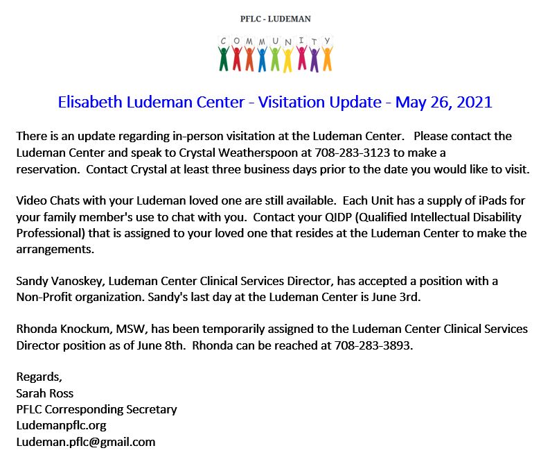 Hello, and welcome to the Parents and Friends of Ludeman Center website, known by our initials, PFLC.